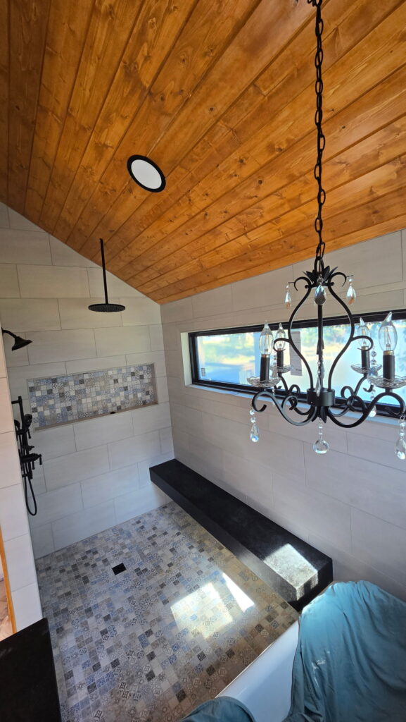 Walls are prepared and reinforced, shower pans are built with correct slope and drainage, and waterproofing systems are installed according to best practices. Niches and benches are framed as part of the structure, not added after the fact. Tile is then set with consistent spacing and clean transitions, followed by proper grouting and silicone application.